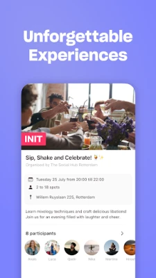 INIT isn't just a way to find some fun activities to do, it's a whole new way to explore a city and meet new people! With INIT, you're not just scrolling through endless sites with lists of boring tours or tourist traps. With our easy-to-use app, you can quickly find and join activities that fit your schedule and interests.