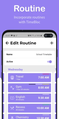 Creating a routine is simple. Just plan it once and let TimeBloc integrate it into your timeline.